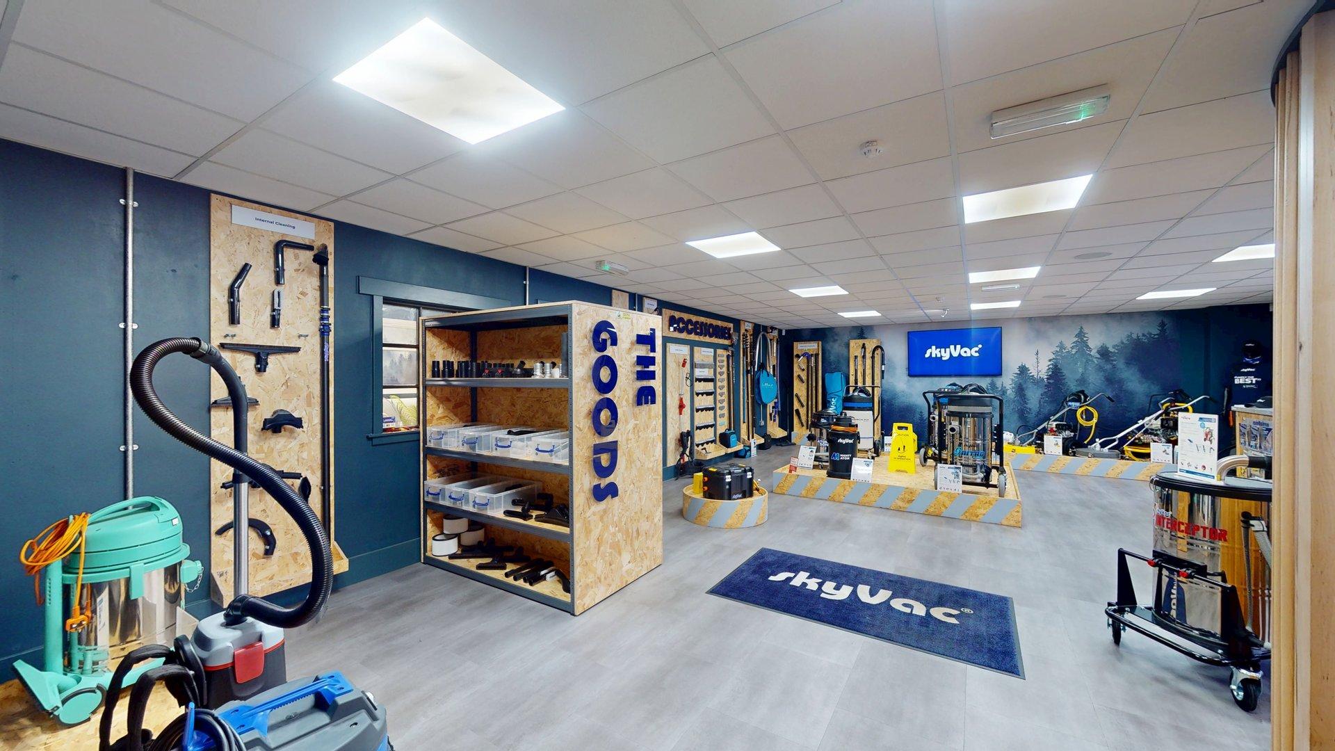 SkyVac is a market leader in high-level cleaning systems, trusted by professionals around the world for their powerful and innovative vacuum solutions. Their showroom, now fully digitised through Scene3D’s Virtual Tour, gives customers a seamless way to explore the full range of SkyVac products – from gutter cleaning systems and internal vacuums to inspection cameras and accessories. The immersive walkthrough offers a clear, professional view of the layout, product displays, and functionality, making it easier than ever for buyers to browse and engage with SkyVac’s offering remotely.