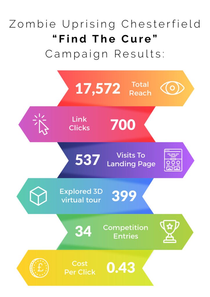 Overall the team at Zombie Uprising were extremely happy with the results of this unique campaign, leaving a 5 star review on our google business page and putting plans in place to run further campaigns with Scene3D in the near future.